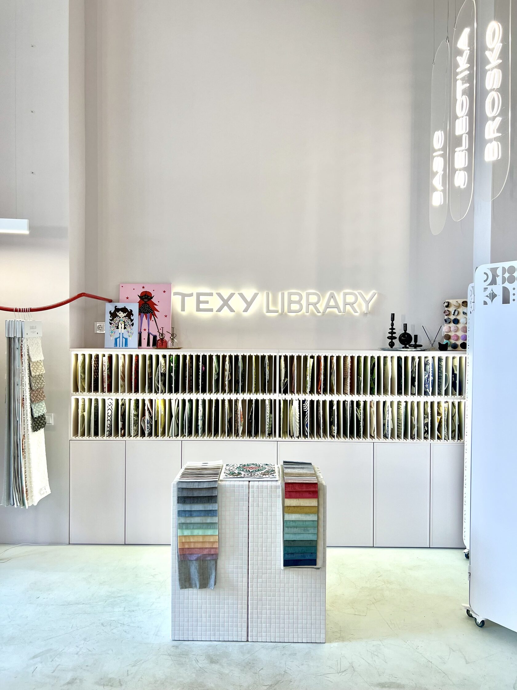 В этом году мы заморочились и решили создать студию со своим брендированным дизайном интерьера У нас появляются зоны для работы с текстильной библиотекой, стол для записи подкастов. Прозведение мастер класов будет еще камернее и точечнее, Мы сделали мощную систему вентиляции, также предусмотрели зону отдыха для гостей.